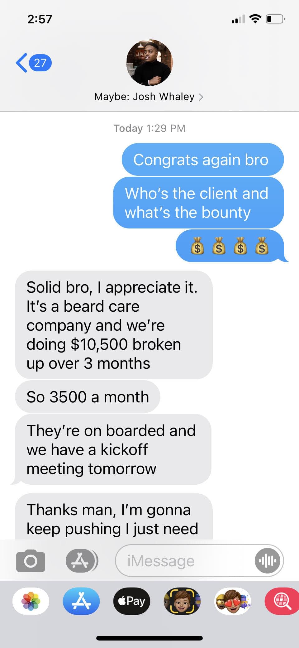 Our done-for-you cold email clients get many more clients per week but they're shelling out some serious cash. $10,000+ per month.